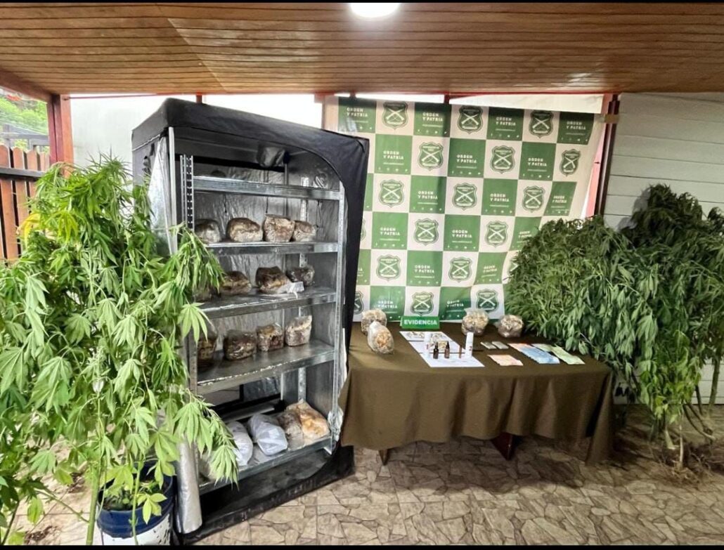 Las diligencias investigativas permitieron incautar una importante cantidad de droga, correspondiente a más de 31 kilos de hongos alucinógenos, además de ocho plantas de cannabis sativa que se encontraban en poder del imputado. Asimismo, durante el operativo se decomisó dinero en efectivo, teléfonos celulares y pesas digitales, elementos que serán incorporados como medios de prueba en la investigación.