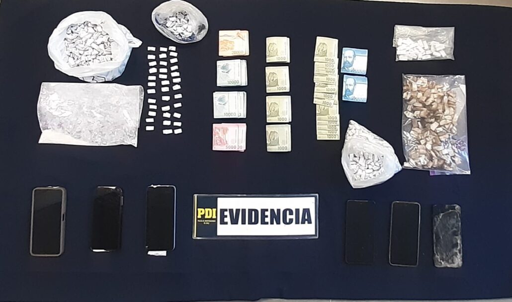 En el procedimiento se incautaron 1.187 dosis de cocaína base y cannabis a granel, sustancias avaluadas en cerca de cuatro millones de pesos. Además, se decomisaron 564 mil pesos en dinero en efectivo, correspondiente a ganancias obtenidas por la venta de drogas.